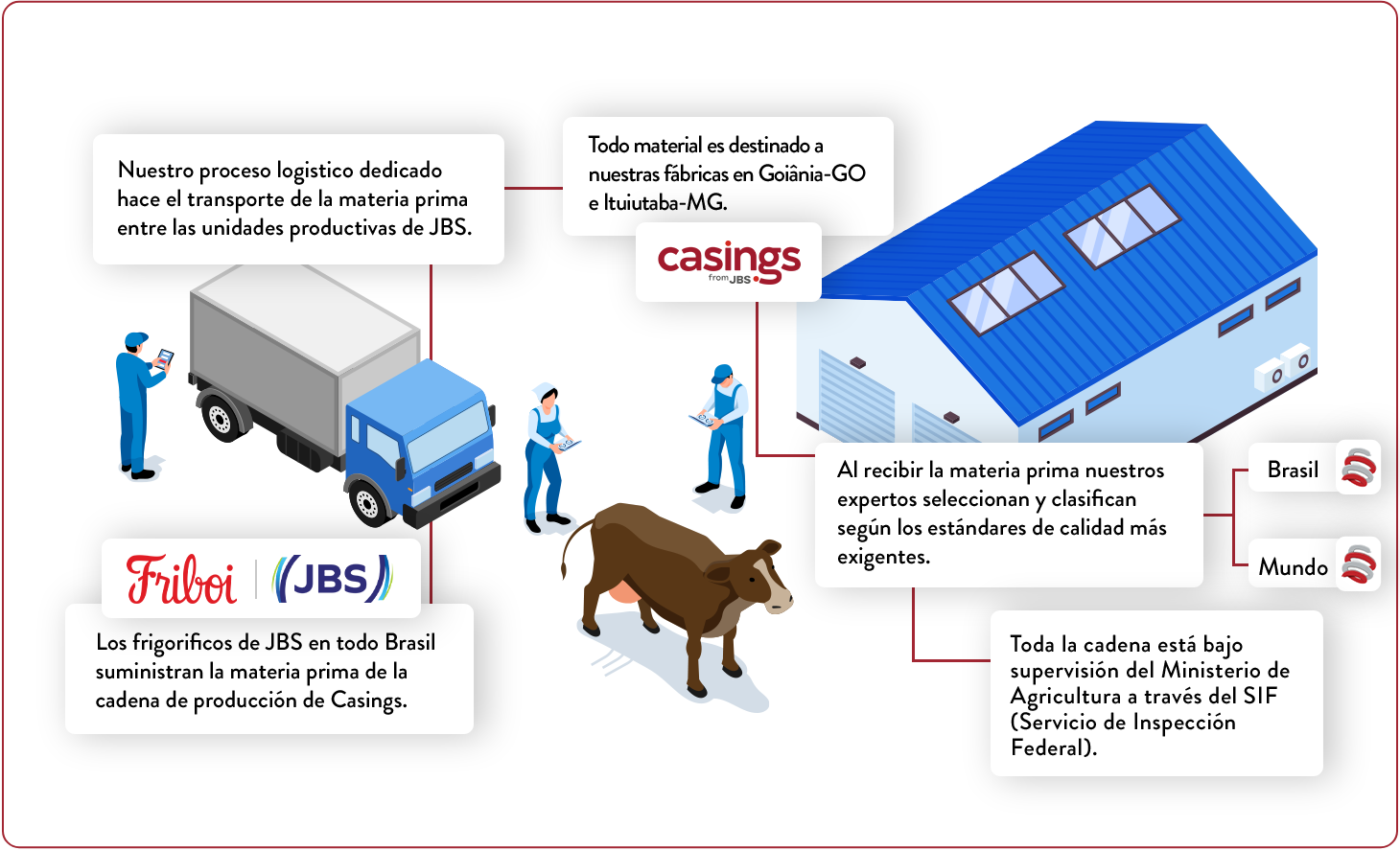 Somos parte de JBS, una de las compañías líderes mundiales en la producción de proteína animal. Nuestra amplia capacidad de producción garantiza nuestra eficiencia en la disponibilidad constante de materia prima fresca y de excelente calidad para nuestros clientes.